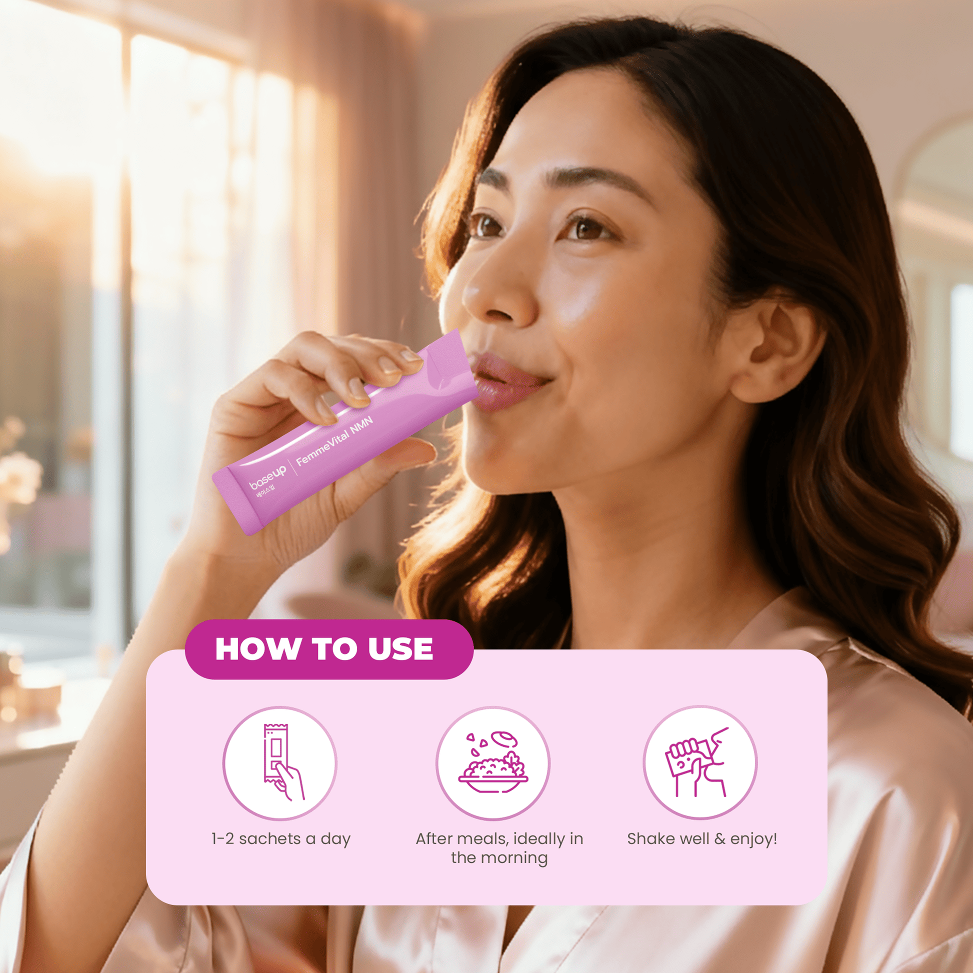 FemmeVital NMN is suitable for women of all ages, especially those in the more matured age group, as NAD⁺ levels (energy level) begin to decline from around age 25.